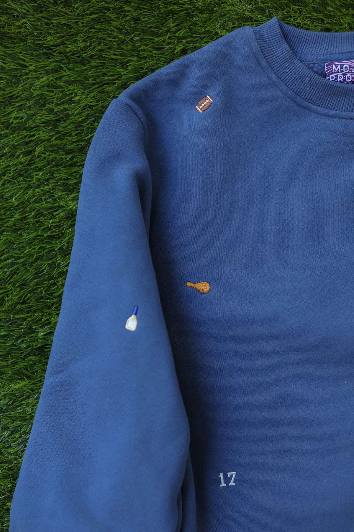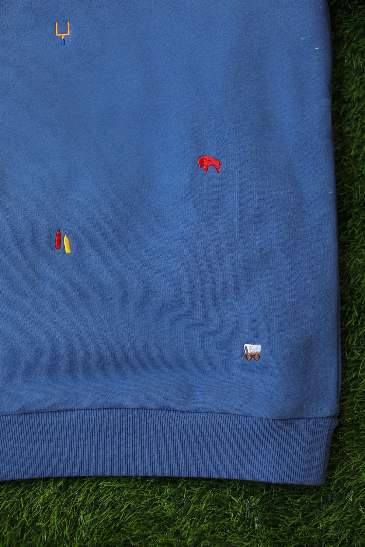 Tiny embroidered Buffalo charms over front, back, & sleeves